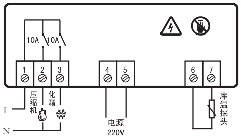 一继电器触点输出容量:压缩机10A/220VAC(或16A/220VAC可直接驱动单相1HP压机)、化霜10A/220VAC